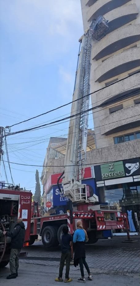 عمل عناصر من الدفاع المدني، على إخماد حريق شبّ على التراس التابع للطابق الأول من مبنى سكني مؤلف من ثماني طبقات في منطقة السبتيه، حيث طاولت النيران ألواحًا للطاقة الشمسية وبطاريات ليثيوم.