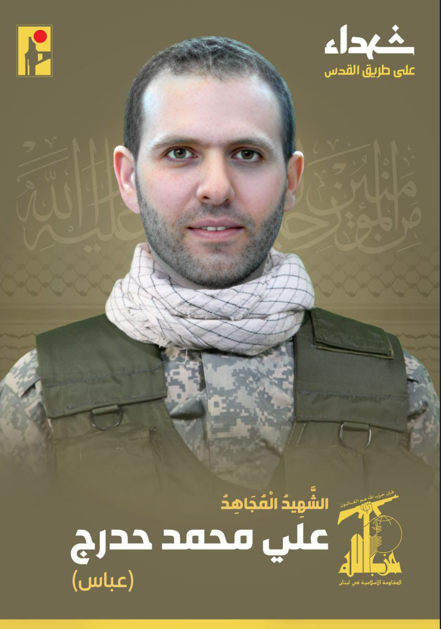 نعت المقاومة الإسلامية الشهيد على طريق القدس علي محمد حدرج “عباس” من بلدة البازورية في جنوب لبنان.