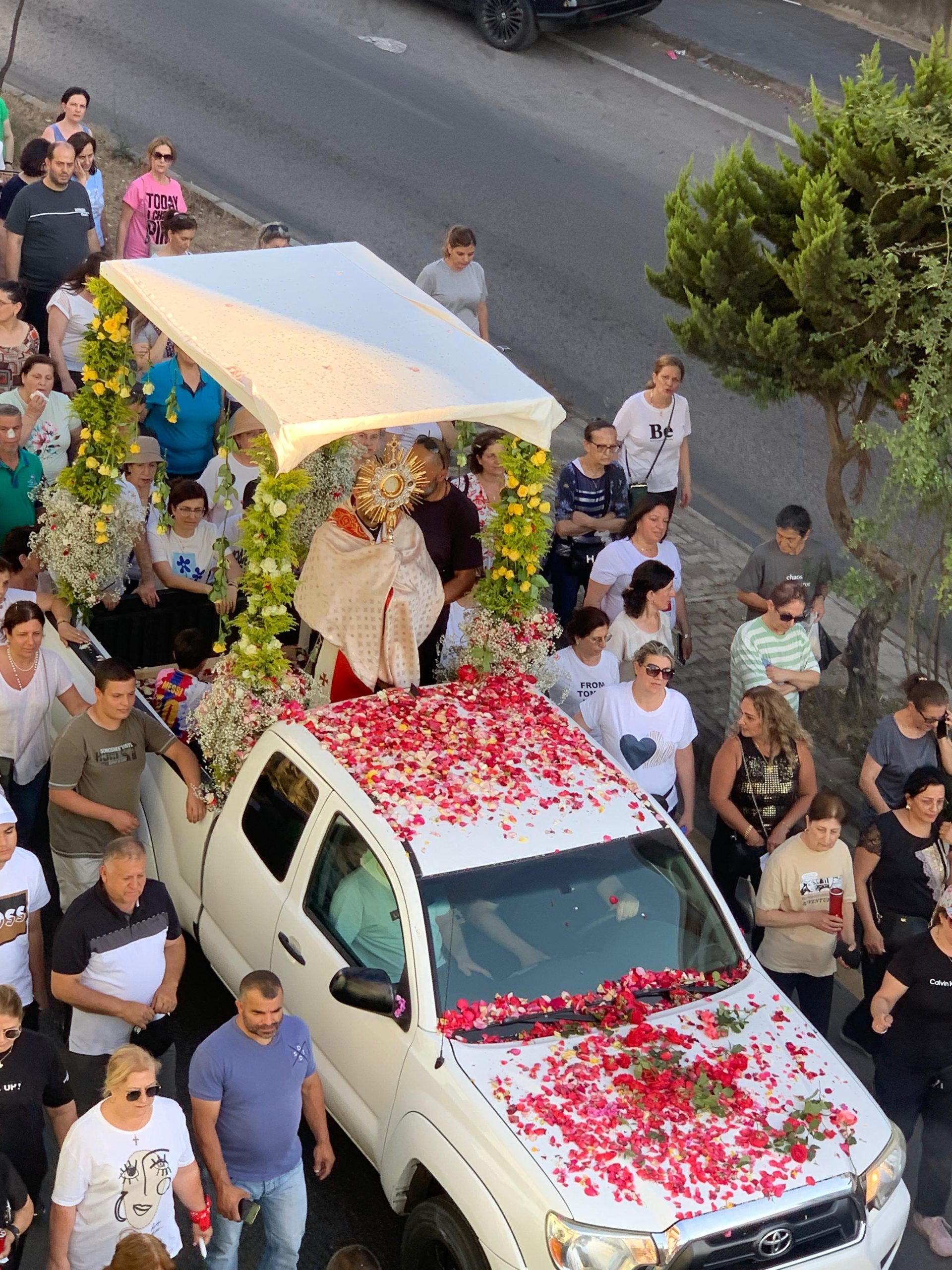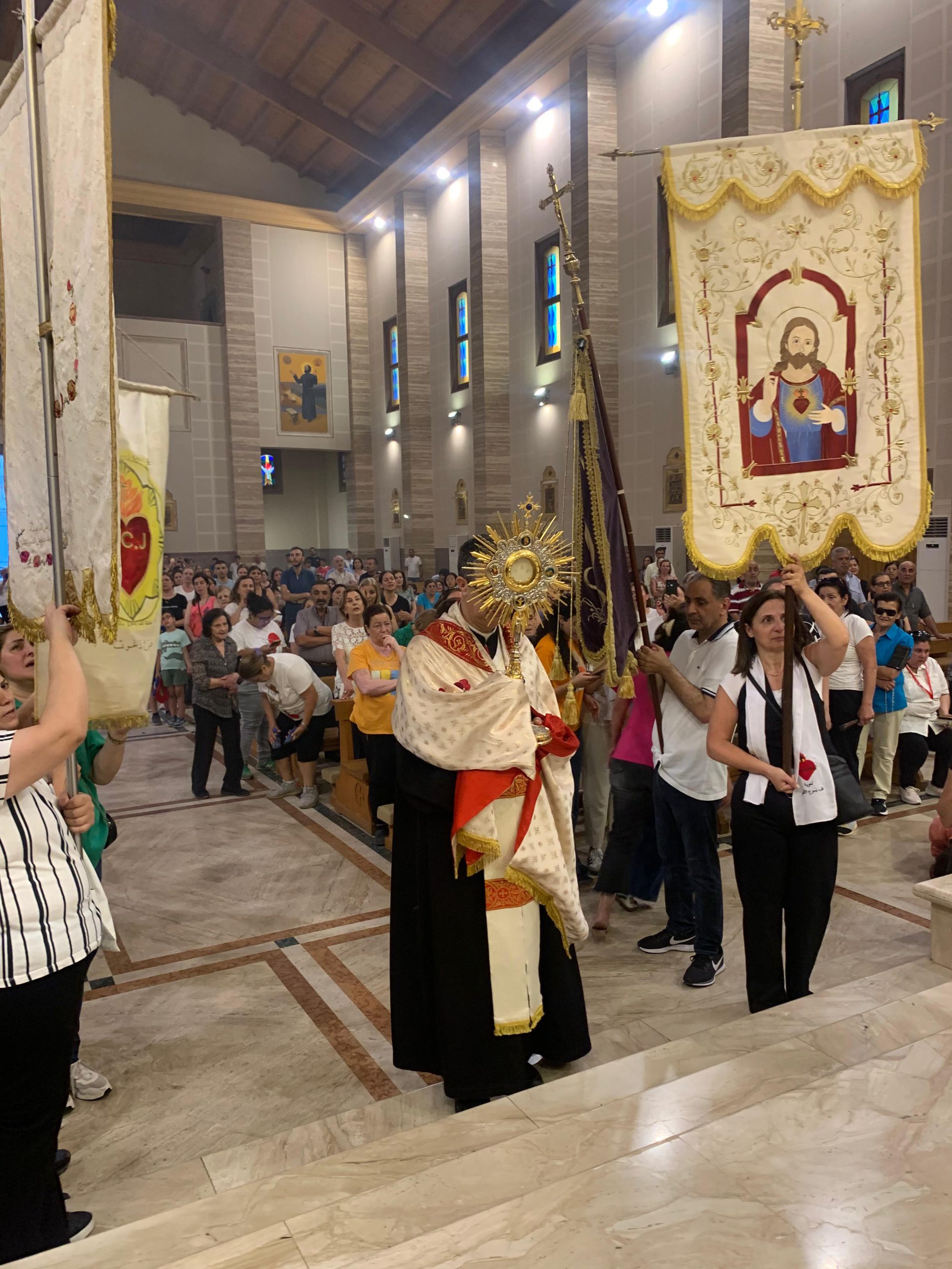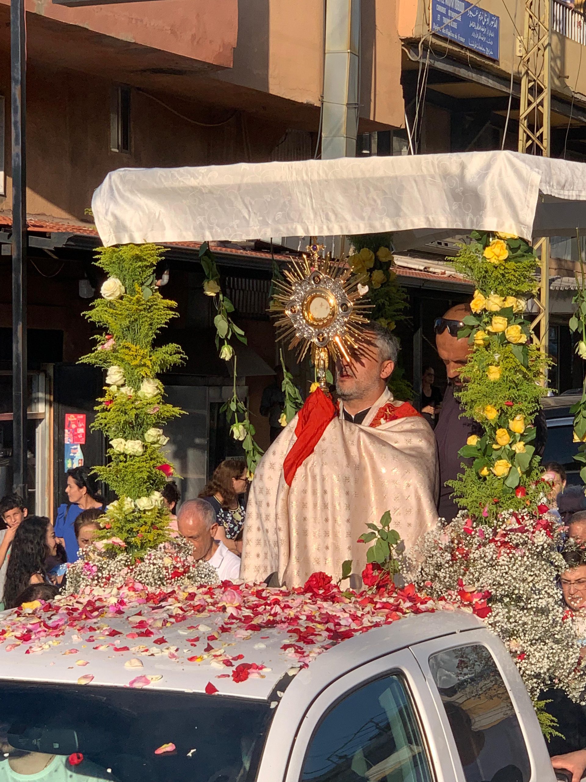 لمناسبة عيد القربان المقدّس نظّمت رعية إهدن – زغرتا مسيرة صلاة جابت شوارع زغرتا انطلاقا من كنيسة مار يوسف في العبي وصولا الى كنيسة مار مارون في العقبة تقدم المسيرة الخوراسقف اسطفان فرنجيه وكهنة الرعية والمجلس الرعوي بالاضافة الى الاخويات والكشاف وعدد كبير من أبناء الرعيّة الذين واكبوا المسيرة بنثر الورود وحرق البخور.