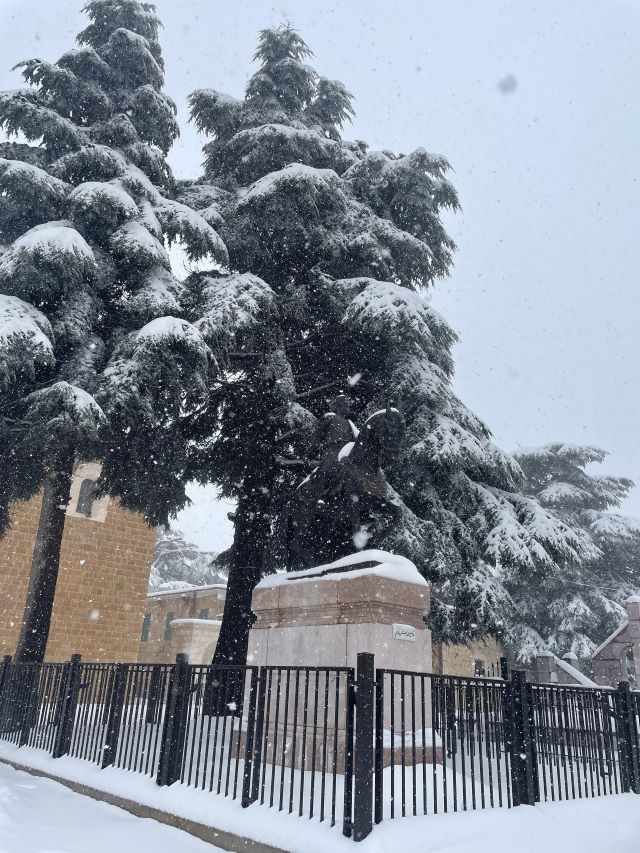 عند “الكتلة” وامام كنيسة مار جرجس تجد الثلج كثيفًا وقد غطى تمثال البطل يوسف بك كرم وحصانه. ويستعد بعض سكان إهدن لقضاء عطلة نهاية الأسبوع فيها حيث تغادرنا “أسيل” في الـ”ويك آند” لنستقبل منخفضًا جويًا آخر مطلع الأسبوع المقبل.