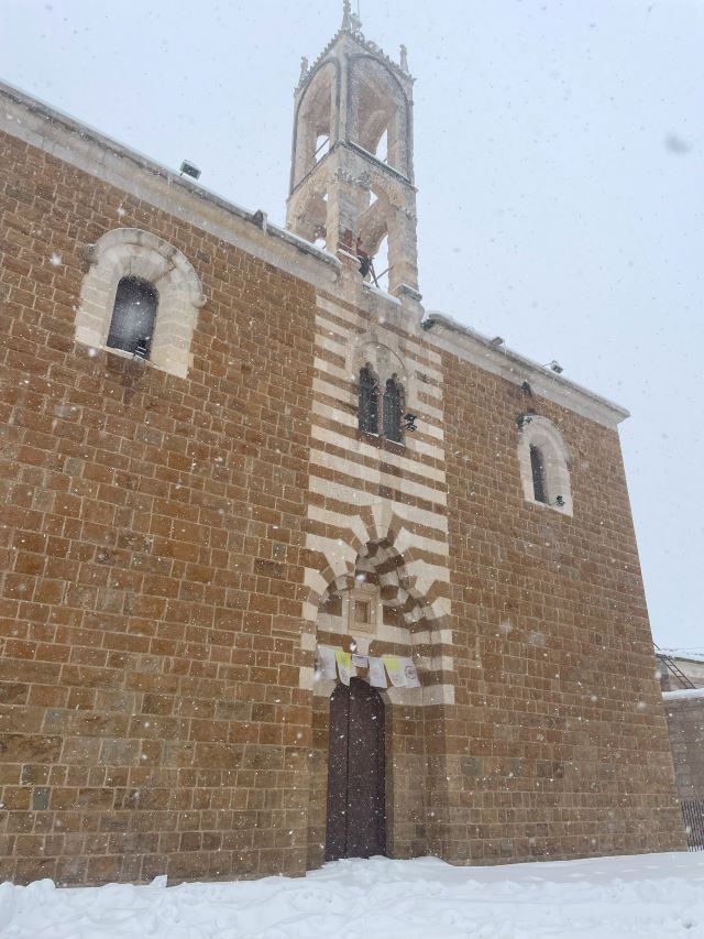 ورغم قساوة الطقس ترأس الخورأسقف اسطفان فرنجيه القداس في كنيسة مار جرجس ظهر اليوم اذ دعا الى الصلاة ليفيض الرب علينا نعمه في هذه الظروف.