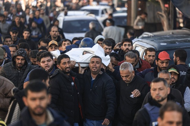 على صعيد آخر، شيّع مئات بينهم عناصر من الدفاع المدني، ثلاثة من زملائهم الذين قتلهم استهداف بصاروخ من طائرة استطلاع وسط خان يونس.