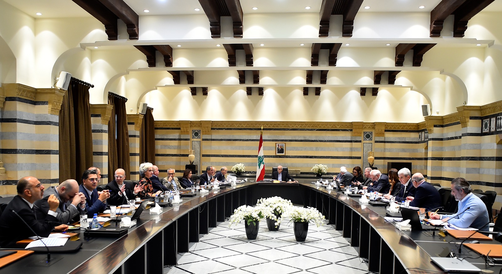 “عقد مجلس الوزراء جلسة ثالثة له هذا الأسبوع في السرايا كبير برئاسة دولة رئيس مجلس وزراء ومشاركة السيدات والسادة الوزراء بغياب وزيرة البيئة ، استكمل المجلس درس مشروع قانون إصلاح وضع المصارف في لبنان وأعاده تنظيمها مادة مادة وعدل بعض أحكام هذا المشروع في اتجاه تعزيز مضمونه وفق الروحية التي صيغ بها وأقره.