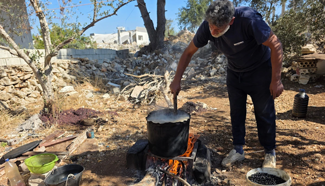 على موقدٍ صغير، يغلي علي صالح، حَبّات الغار السوداء في «تنكة» صغيرة لاستخراج الزيت، هي كل ما تمكّن من جمعه هذا الموسم بعد عودته للإقامة في بلدته. في السابق، كان يُنتج برميلاً ضخماً من زيت الغار، يبيع جزءاً منه ويحوّل الجزء الآخر إلى صابون.