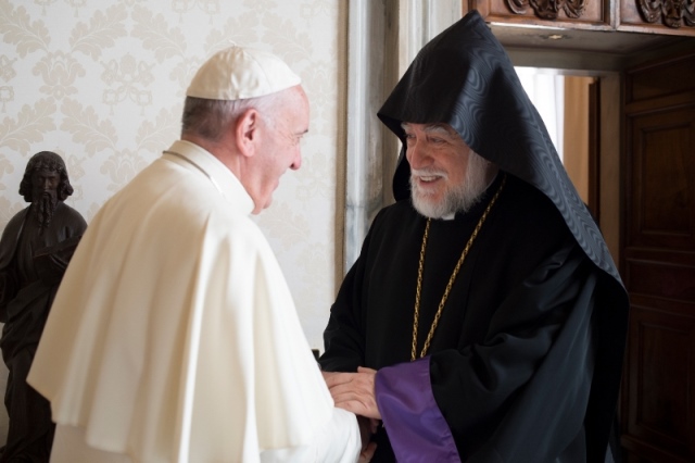 وكان الكاثوليكوس آرام الاول قد عبّر عن شكره لاعتراف الحبر الأعظم بالإبادة الجماعية المرتكبة في حق الأرمن وعن تقديره لدعم قداسته للبنان واللبنانيين.