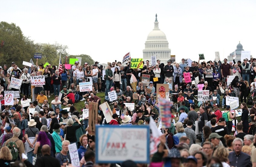 وحمل المتظاهرون الأعلام واللافتات، وشبه بعضهم الوضع الحالي في الولايات المتحدة بألمانيا النازية، وقد وصفت التظاهرة بالسلمية رغم كثافتها.