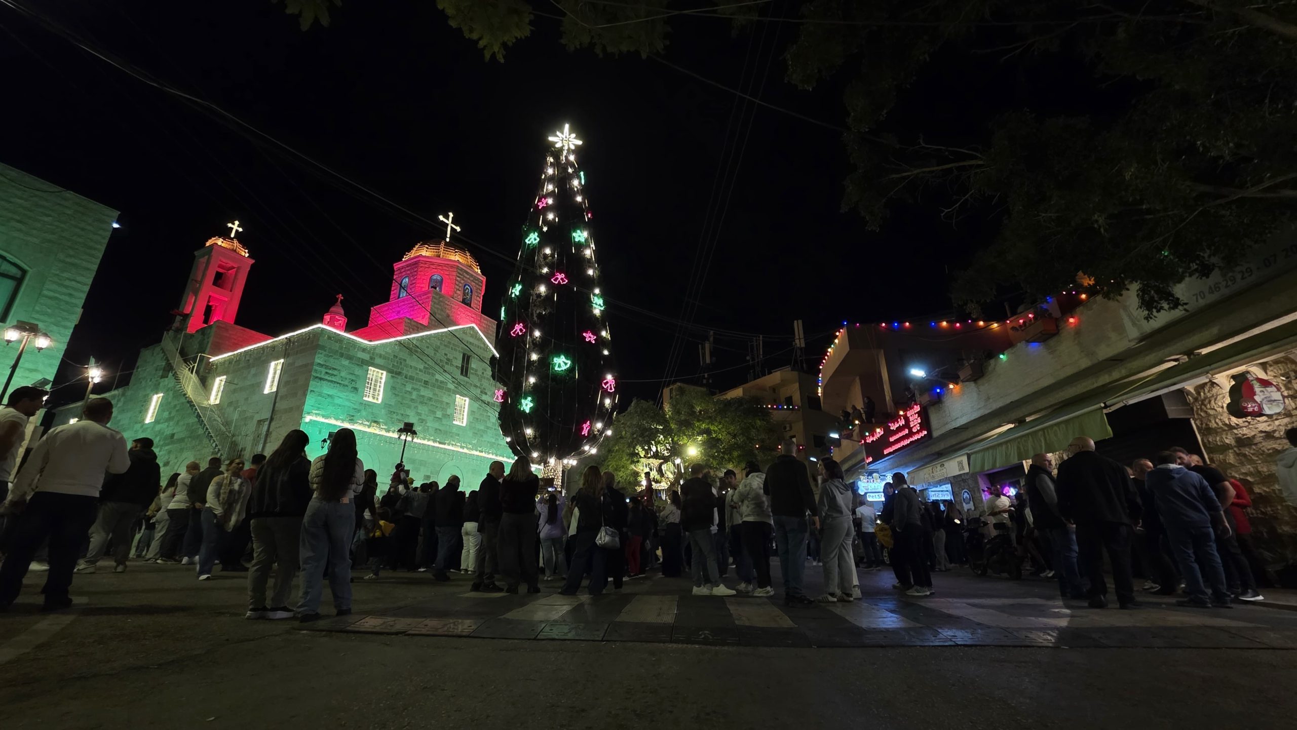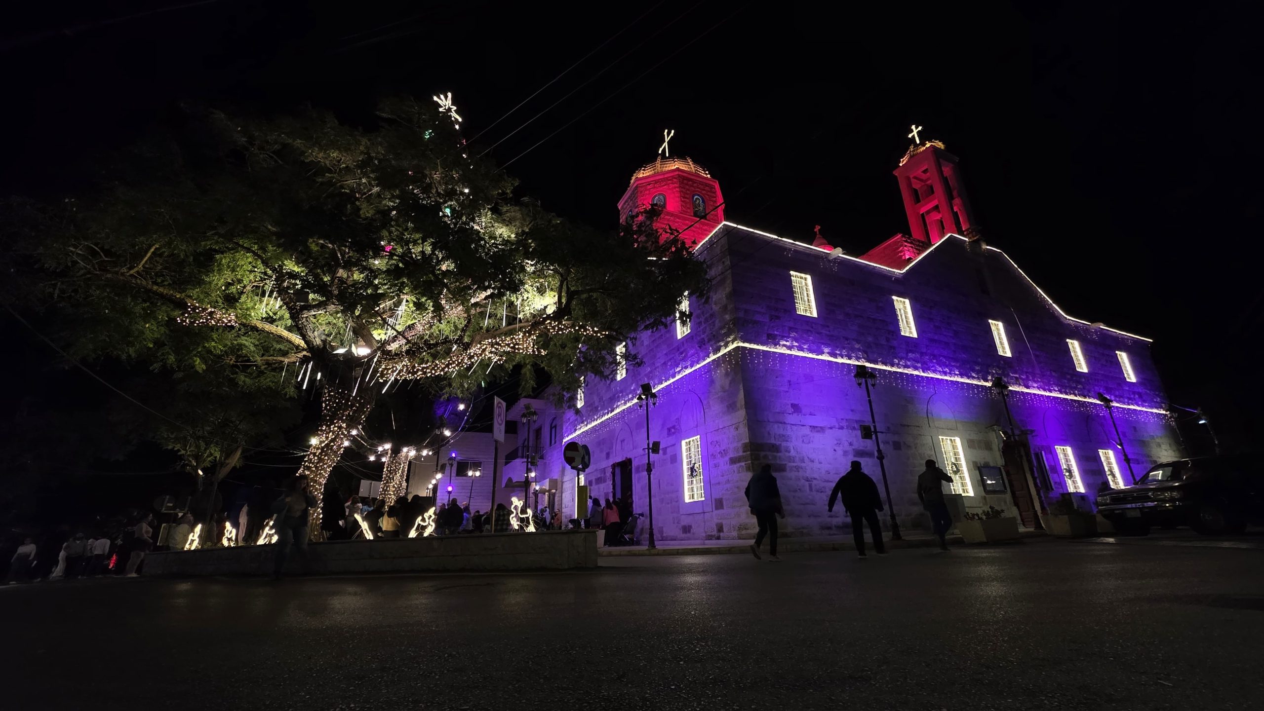 وتزيّنت ساحة مغدوشة بالأضواء والزينة التي أضفت أجواء احتفالية مميزة إيذانًا ببدء موسم الأعياد.