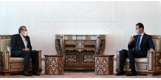 استقبل الرئيس السوري بشار الأسد اليوم علي أصغر خاجي كبير مساعدي وزير الخارجية الإيراني والوفد المرافق له.