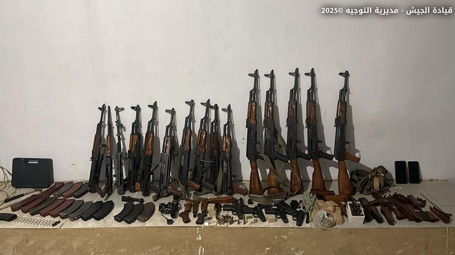 توقيف المواطن (ع.ا.) المطلوب بجرم الاتجار بالأسلحة في بلدة عرسال – بعلبك، وضبط كمية كبيرة من الأسلحة الخفيفة والمتوسطة والذخائر الحربية، بالإضافة إلى أعتدة عسكرية.