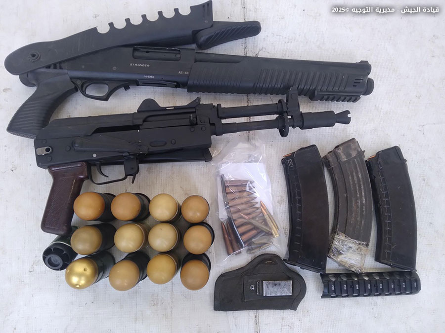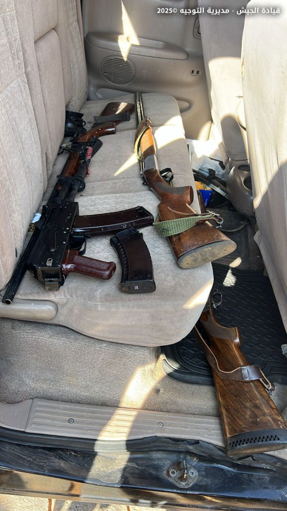 “في سياق الملاحقة المستمرة للمطلوبين والمخلين بالأمن وتجار المخدرات، نفّذت وحدة من الجيش تؤازرها دورية من مديرية المخابرات عمليات دهم واسعة في حي الشراونة – بعلبك، وأوقفت المواطنَين (ن.ج.) و(ع.ج.) والسوريين (ع.س.) و(ب.م.) و(ع.ك.)، لإطلاقهم النار على دوريات للجيش بتواريخ سابقة، واتجارهم بالمخدرات والأسلحة الحربية، وضبطت كمية من المخدرات والأسلحة الحربية.