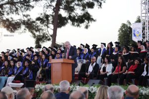 الدكتور أدولف عبدالله ممثلاً النائب فرنجيه في حفل تخرج في مجمع ميشال سليمان الجامعي في راسمسقا