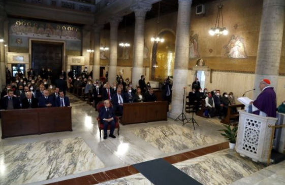 وقال: “في هذه الأمسية بالذات، ومن خلال حضور فخامة رئيس الجمهورية اللبنانية العماد ميشال عون في ما بيننا، إن المؤمنين الحاضرين معنا في هذه الكنيسة، متحدون في رفع تضرعاتهم الى الرب على نية لبنان، لكي يبقى امينا لهويته بين مختلف دول الشرق الأوسط، وبالأخص من أجل الخروج من الازمة الاقتصادية والاجتماعية الخطيرة التي تضربه منذ فترة، والتي ضاعفت من خطورتها التداعيات الناجمة عن انفجار مرفأ بيروت في 4 أب 2020”.
