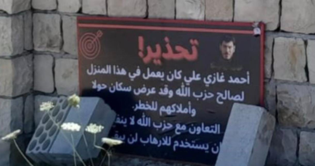 العدو يترك لافتة أمام منزل أحد شهداء بلدة حولا