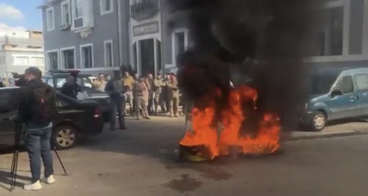 اهالي ضحايا انفجار المرفأ يشعلون اطارات امام مبنى الجمارك