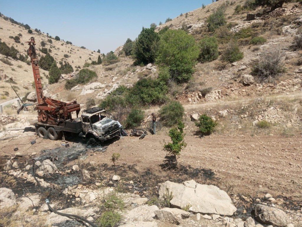 بالصورة: الحفارة المُستهدفة بغارة العدو في وادي فعرا – في البقاع الشمالي