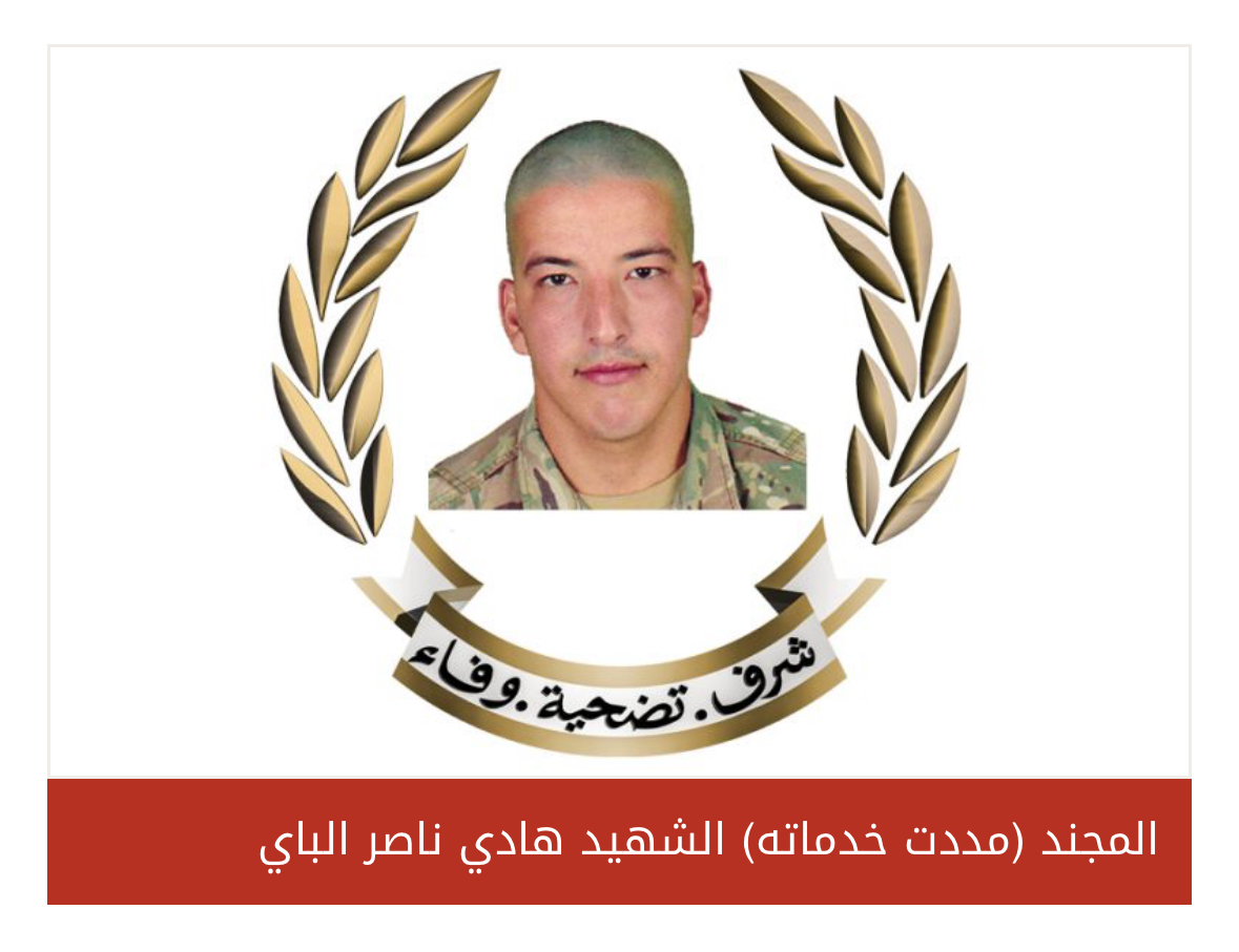 تنعى قيادة الجيش ـــ مديرية التوجيه، المؤهل أول الشهيد عباس فوزي سلهب والمجند الشهيد احمد فادي فاضل والمجند الشهيد ابراهيم خليل مصطفى والمجند الشهيد هادي ناصر الباي والمجند الشهيد محمد علي شقير والمجند الشهيد يامن الحلاق الذين استشهدوا بتاریخ 9/8/2025 جراء وقوع انفجار أثناء الكشف على مخزن أسلحة وذخائر، وذلك في وادي زبقين – صور. وفي ما يلي نبذة عن حياة العسكريين الشهداء: