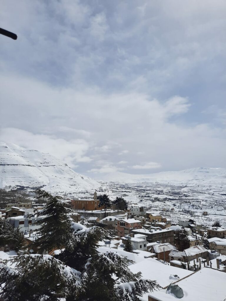 عشية اليوم الاخير من فصل الشتاء واليوم الاول لاستقبال فصل الربيع، فصل الالوان، لا يزال اللون الابيض طاغياً ليس فقط على رؤوس الجبال والهضاب بل ضمن القرى والبلدات الجبلية التي لا تزال سماكة الثلوج متراصة على جوانب طرقاتها وعلى سطوحها القرميدية.