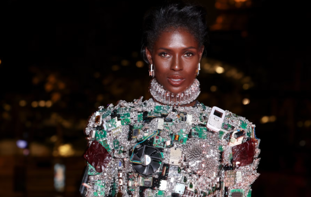 بالصور: ممثلة بريطانية ترتدي فستانا من “رقائق إلكترونية”