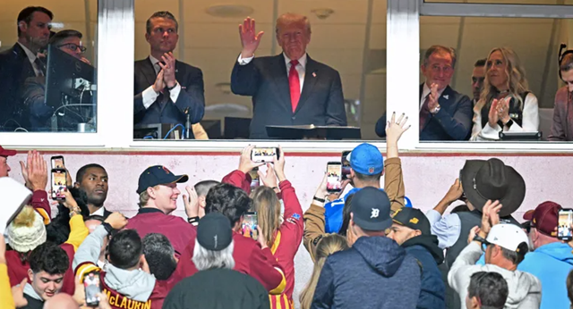 أصبح دونالد ترامب أول رئيس أميركي في المنصب يحضر مباراة في الموسم العادي للدوري الوطني لكرة القدم الأميركية منذ ما يقرب من نصف قرن، حيث حضر مباراة فريق واشنطن كوماندرز ضد ديترويت لايونز، الأحد.