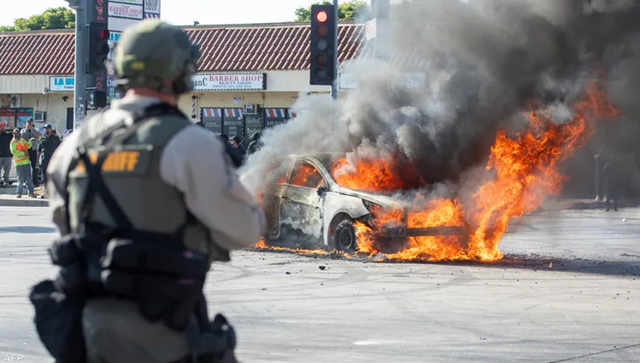 بالفيديو: تصاعد الاحتجاجات في لوس أنجلوس.. إغلاق طرق وحرق سيارات