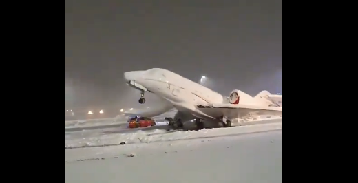 وتظهر الطائرة في مقطع الفيديو وقد علقت بالثلوج و”التصقت بالأرض”، بينما كان أنفها مرفوعا للأعلى.