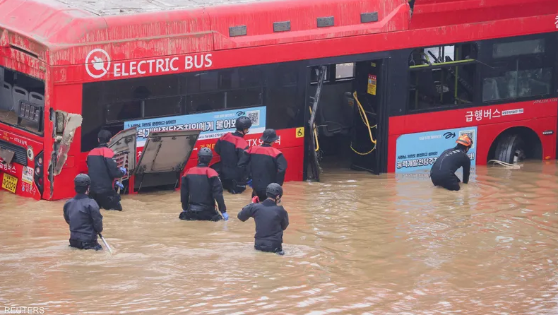 انتشل عمال إنقاذ كوريون جنوبيون 9 جثث من نفق غمرته مياه الأمطار، حيث علقت نحو 15 مركبة في المياه الموحلة، بعدما تسببت الأمطار الغزيرة على مدى أيام في حدوث سيول وانهيارات أرضية ودمرت منازل في جميع أنحاء البلاد، بحسب مسؤولين.