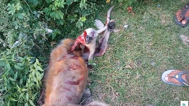 رفض قرد رضيع في الهند الابتعاد عن جسد أمه بعد أن دهستها سيارة.