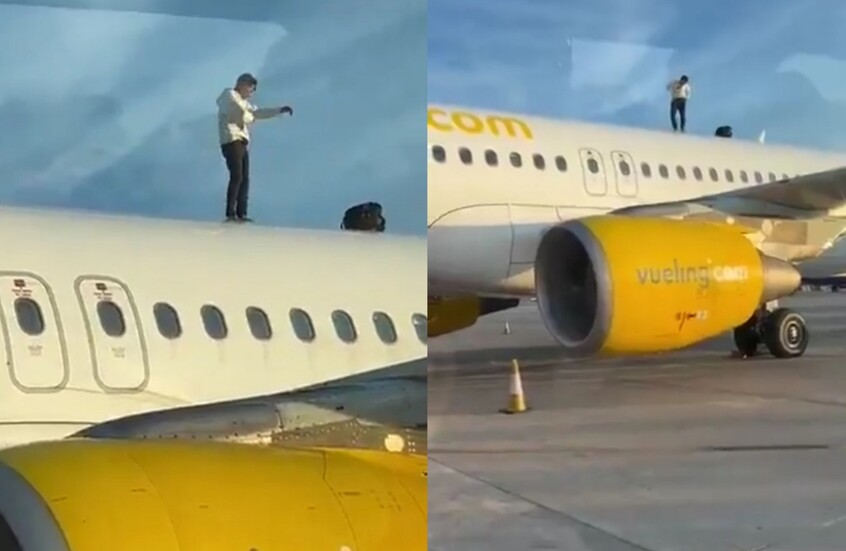 ووثق ركاب ينتظرون في صالة المطار لحظة صعود الرجل إلى سطح الطائرة في مطار مانيسيس ببلنسية. وأظهرت لقطات الفيديو الرجل وهو يستفز طاقم الأرضية، حيث شوهد وهو يستخرج علبة مشروب من حقيبته السوداء ويفتحها ليشربها على سطح الطائرة. وبعد تناول جرعة طويلة، رمى العلبة بعنف على الأرض ثم خلع سترة رياح بيضاء وألقى بها أيضا.
