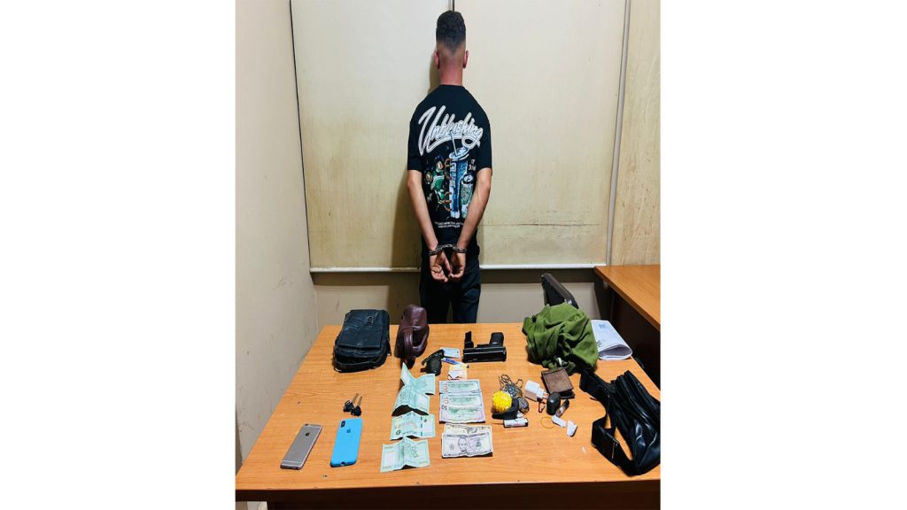 بتفتيشه، ضُبط بحوزته مبلغ مالي ومسدّس حديدي خلّبي.