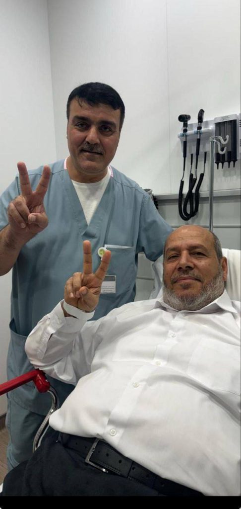 بعد محاولة اغتياله… أول صورة لخليل الحية من المستشفى في الدوحة