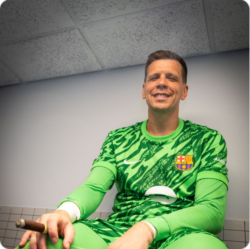 وظهر الحارس البولندي، وهو يدخن السيجار داخل غرف ملابس برشلونة بعد نهاية المباراة التي جمعت الفريق الكتالوني بإسبانيول.