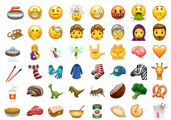 وتتضمن السلسلة الجديدة من الرموز التعبيرية عدداً من المخلوقات الأسطورية والخرافية مثل مصاصي الدماء والقزم والجني وحورية البحر ومخلوقات زومبي، كما تشمل حركات يد جديدة وأطعمة، كذلك إيموجي تشير إلى أشخاص يرتدون غطاء للرأس أو شخص لديه لحية، بالإضافة إلى إيموجي للبالغين وكبار السن وقلوب برتقالية ومجموعة جديدة من الحيوانات، كما تشمل القائمة تحديثات لرموز تعبيرية قديمة.
