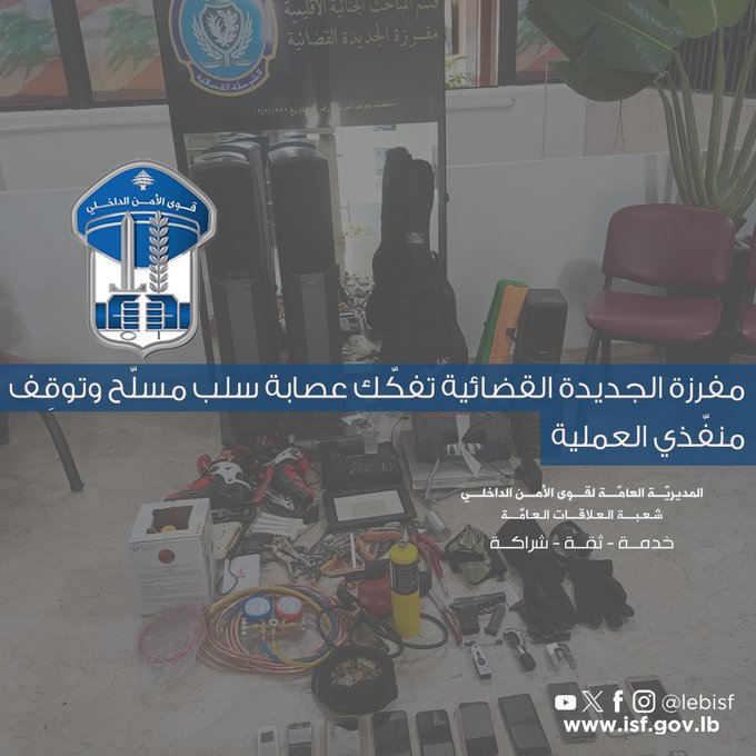كذلك أسفرت المداهمات عن ضبط الدراجتين الآليتين المستخدمتين في العملية، مسدس حربي وممشط مع /8/ طلقات صالحة للاستعمال، أغراض مسروقة من منزل الثاني، أجهزة خلوية وساعات ومبالغ مالية.