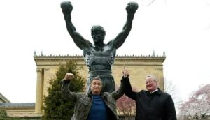 واختارت بلدية فيلادلفيا “موقع درج متحف الفنون” للاحتفال بتكريم ستالون، لأنه يتضمن تمثالاً صخرياً ضخماً لشخصية روكي، كما ظهر البطل يركض على هذا الدرج في سياق الفيلم، على أنغام أغنية “Eye of the tiger”، التي كتبها ستالون عام 1975، وأصبحت من أشهر الأغاني حول العالم.