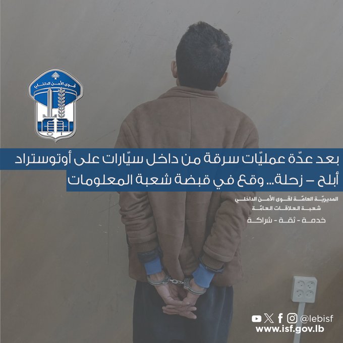 توقيف مطلوب بعد عدّة عمليّات سرقة من داخل سيّارات