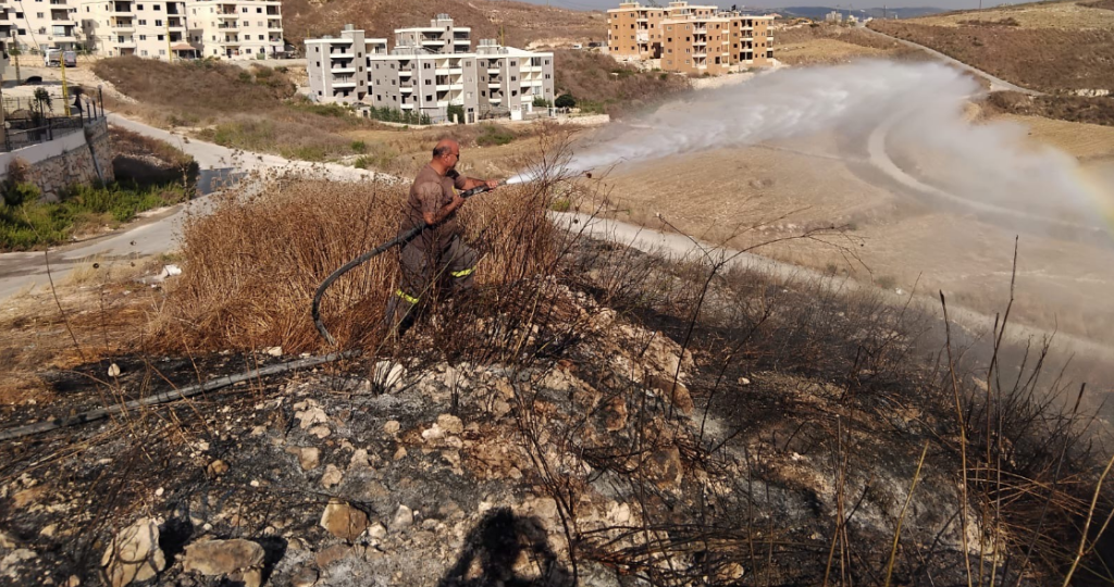 وعملت فرق من مركز الدوير في الدفاع المدني على محاصرة النيران واخمادها.