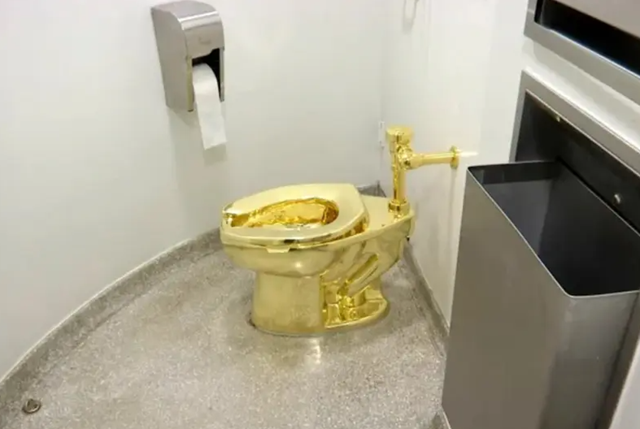 وكان المرحاض، الذي صممه الفنان الإيطالي موريزيو كاتيلان، أحد عوامل الجذب في أحد المعارض عندما سرقه لصوص يحملون مطارق ثقيلة.