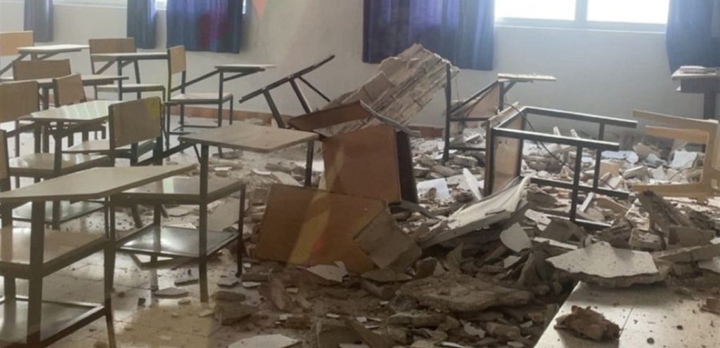 سقوط سقف احد الصفوف في مدرسة في صيدا