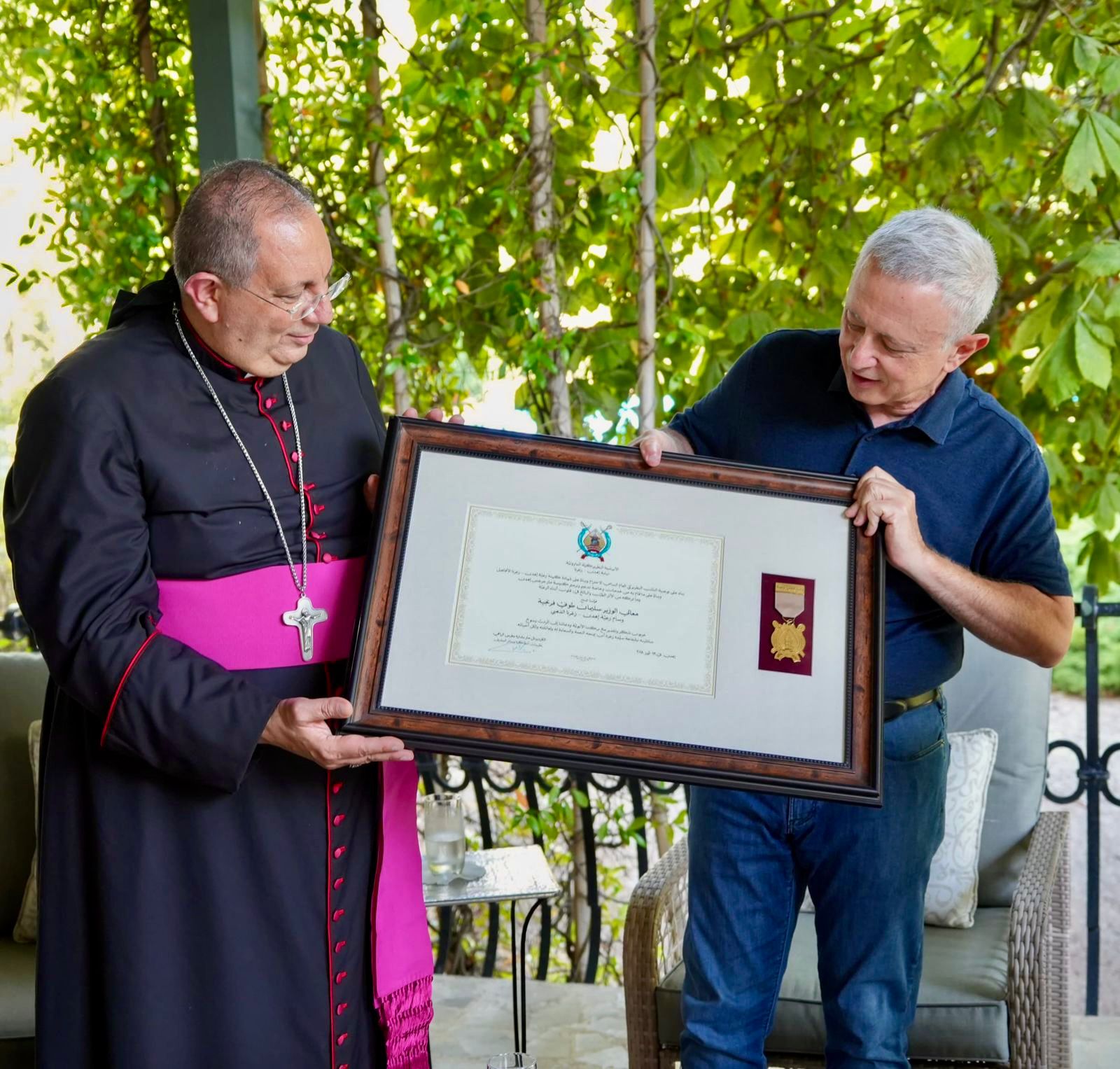 بناء على توصية النائب البطريركي العام السامي الاحترام وبناءً على شهادة كهنة رعيّة إهدن – زغرتا الأفاضل وبناءً على ما قام به من خدمات وخاصة تدعيم وترميم كنيسة مار جرجس إهدن وما تركه من الأثر الطيّب والبالغ في قلوب أبناء الرعيّة