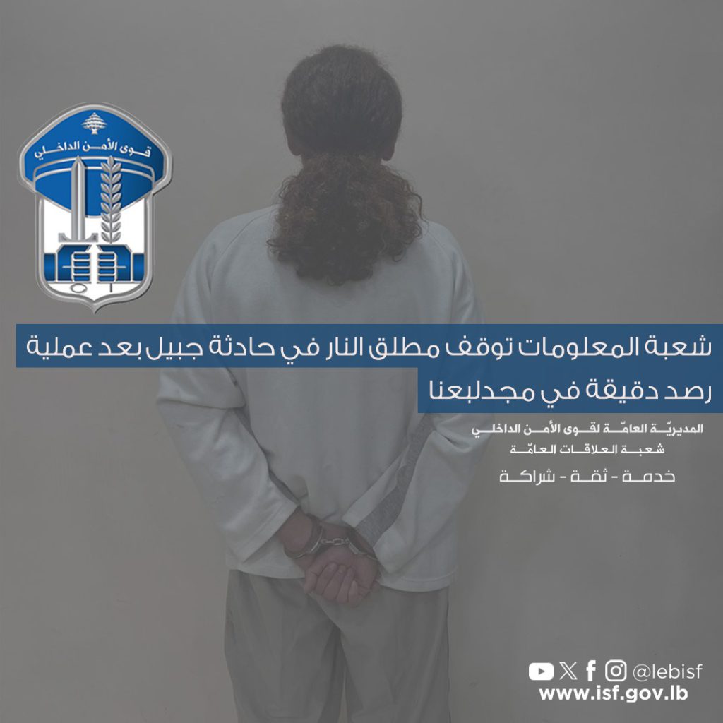 شعبة المعلومات توقف مطلق النار في حادثة جبيل بعد عملية رصد دقيقة