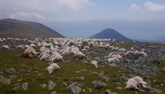 وقال نائب رئيس بلدية نينوتسميندا، ألكسندر ميكيلادزه “كانت هناك صاعقة رعدية قوية في الليل، وفي الصباح كانت هناك مكالمة من مزارع محلي أبلغت عن نفوق عدة مئات من الأغنام”.