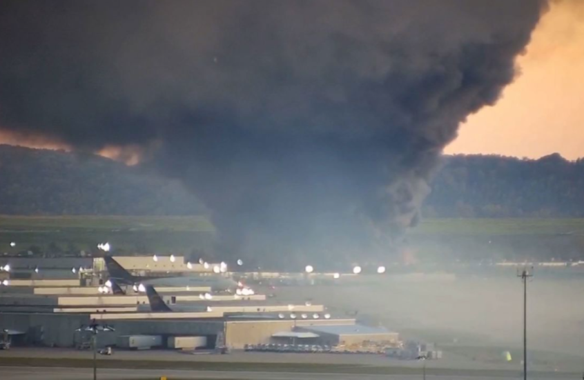 وأفادت القناة بأن طائرة شحن تابعة لشركة “يو بي إس” تحطمت بعد إقلاعها بفترة وجيزة من مطار لويزفيل، مخلفة وراءها دمارا هائلا في المحلات التجارية والطرق، حيث امتدت سحابة ضخمة من الدخان الأسود الكثيف لأميال.