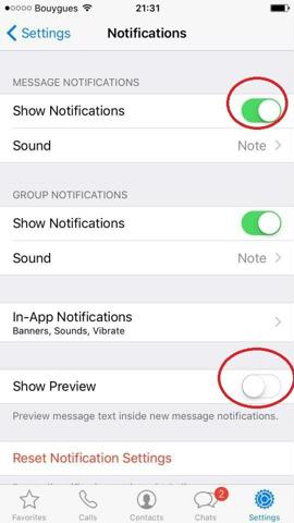 وكل ما عليكم القيام به هو الذهاب إلى إعدادات “واتس آب” داخل التطبيق، ومن ثم النقر على خيار Notifications، وتحويلها إلى “Show Preview”.