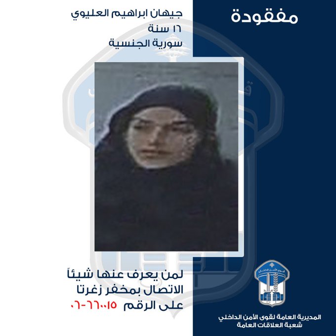 “تُعمّم المديريّة العامّة لقوى الأمن الدّاخلي، بناءً على إشارة القضاء المختص، صورة القاصر المفقودة: