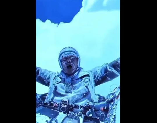 وأظهر مقطع فيديو نشرته وسائل إعلام رسمية صينية، بينغ والجليد يغطي وجهه وملابسه أثناء تحليقه بين السحب.