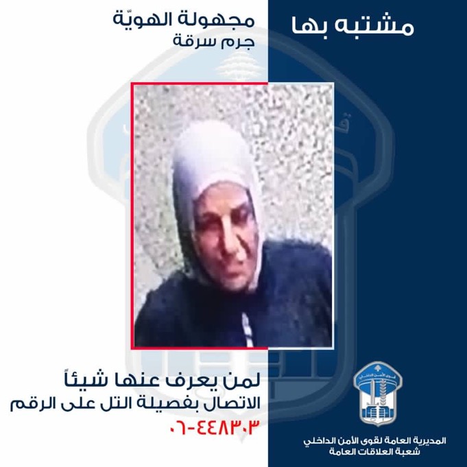 قوى الامن تعمّم صورة مشتبه بها بجرم سرقة
