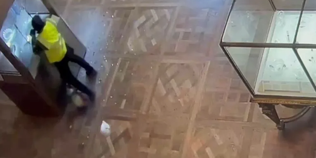 واستعمل أحد اللصين منشارا آليا لإحداث ثغرة في خزانة عرض تاج الإمبراطورة أوجيني، ثم وجه لكمات للزجاج الواقي لإطاحته.