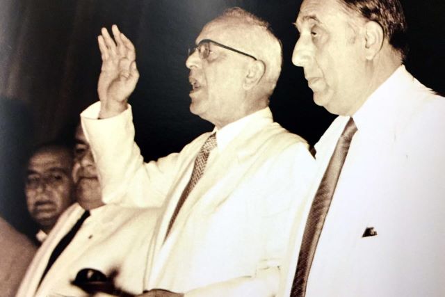 معتمدا برنامجا شاملا للتخطيط والانماء. ساهرا على حاجات اهله وهناءهم ورفاهيتهم. وحادا بذلك من وطأة الهجرة التي تزايد سيلها.