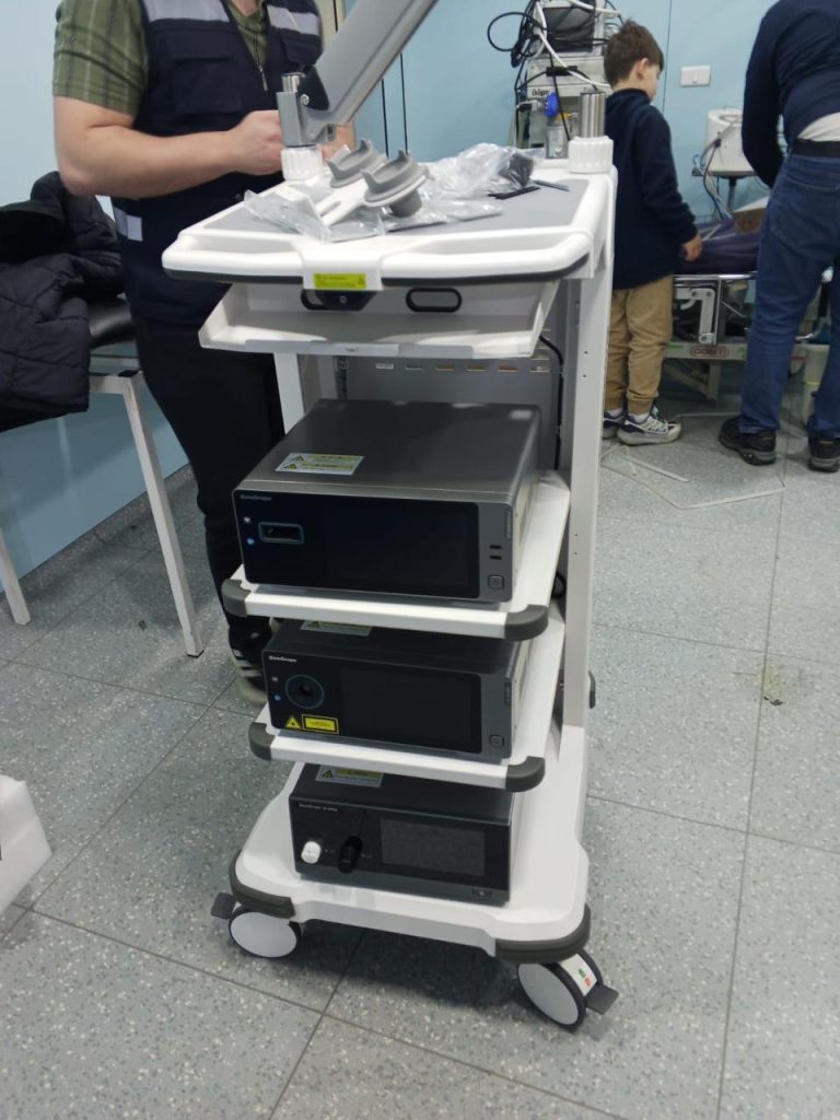 وذلك لإجراء عمليات بالمنظار مع اجهزة متطورة وحديثة لتعقيم المعدات الطبية بالاضافة الى مجموعة معدات للإستعمال في العمليات الجراحية.