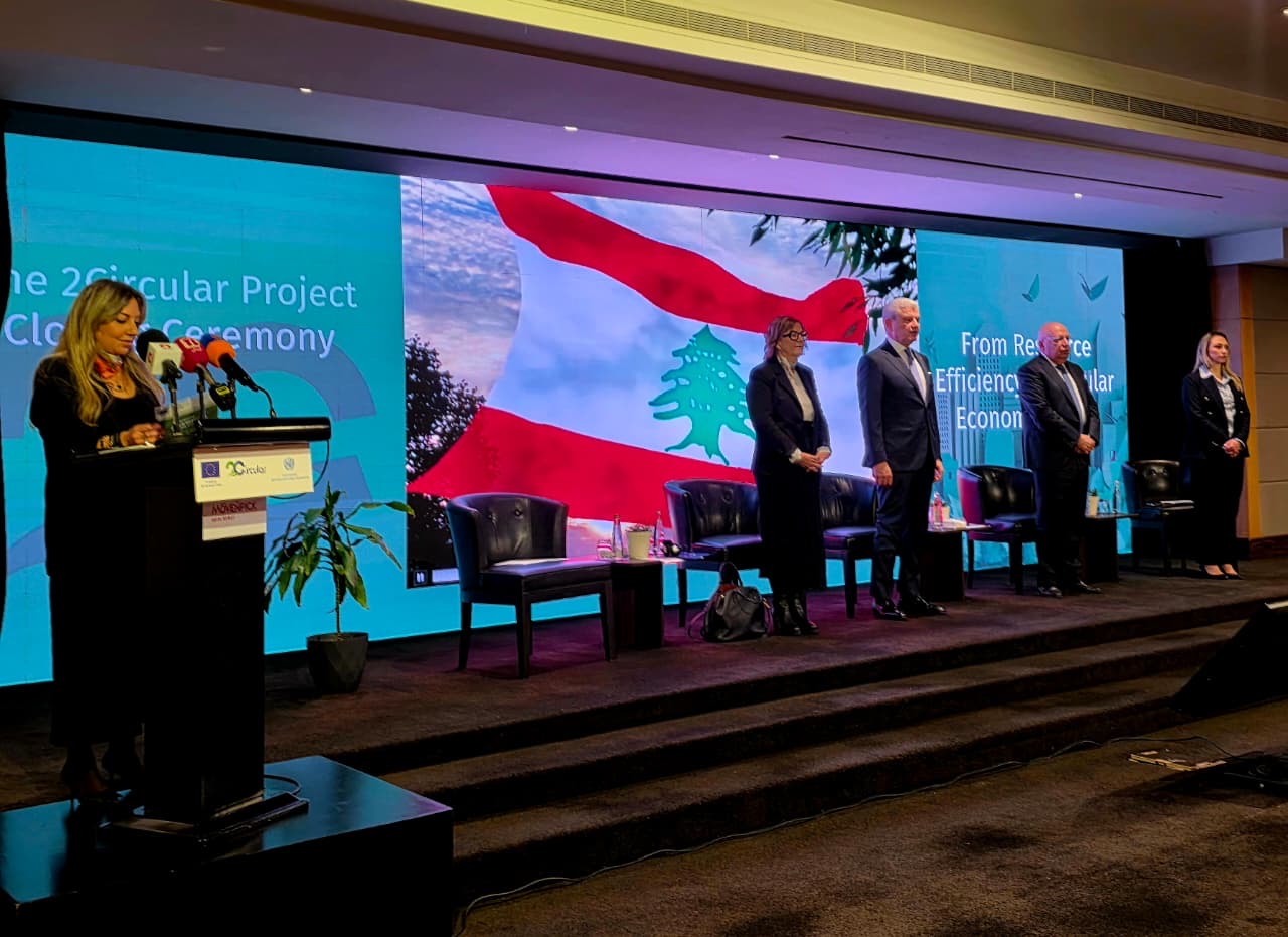 اختُتم مشروع 2Circular المموّل من الاتحاد الأوروبي بحفل ختامي رفيع المستوى أُقيم في فندق موفنبيك – بيروت، بحضور ممثلين عن القطاعين العام والخاص، وشركاء دوليين، إضافة إلى المستفيدين من المشروع، وذلك احتفاءً بالإنجازات المحققة في سبيل تعزيز التحول الصناعي المستدام وتطبيق مبادئ الاقتصاد الدائري في لبنان.